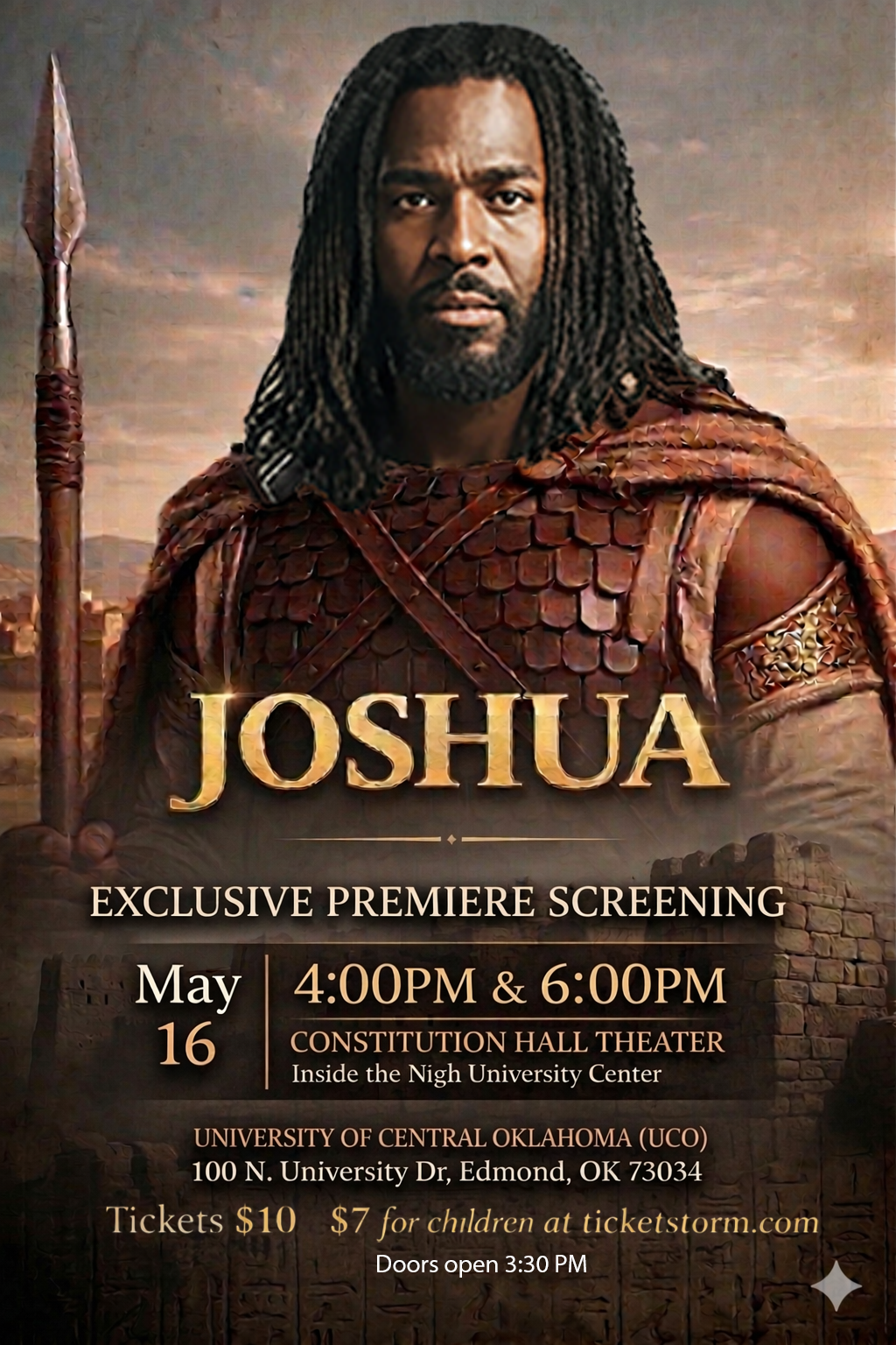 JOSHUA - Exclusive Premiere Screening: A powerful cinematic retelling of the biblical story of Joshua, the leader chosen to guide the Israelites into the Promised Land after Moses. Facing powerful enemies and the towering walls of Jericho, Joshua must lead with faith, courage, and obedience to God's command.