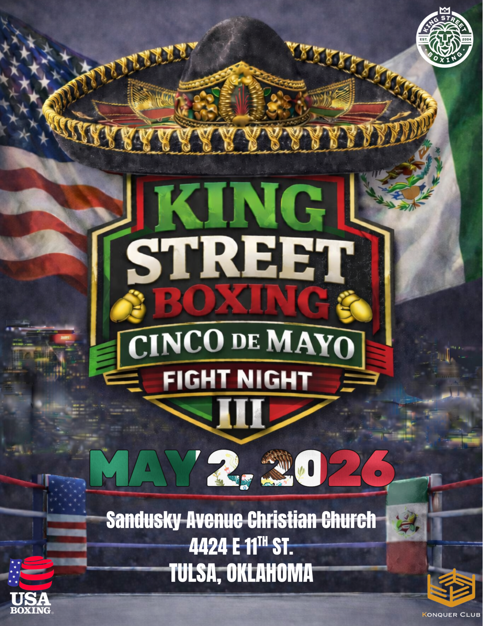 Experience the energy, the culture, and the competition as King Street Boxing presents Fight Night III — a special Cinco de Mayo showcase featuring rising talent, competitive matchups, and a powerful atmosphere you won't want to miss.