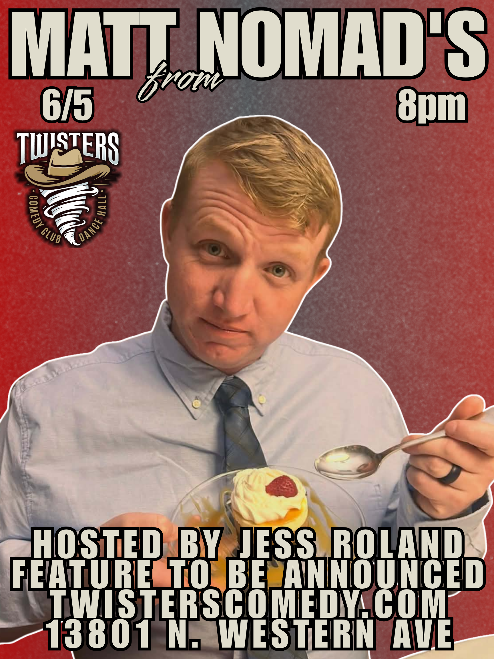 Come watch the AMAZING Matt from Nomad's perform LIVE stand up comedy. Bringing all his experience dealing with wild animals, and his storytelling ability to the stage at Twisters Comedy Club! Wild, true and uncensored comedy!