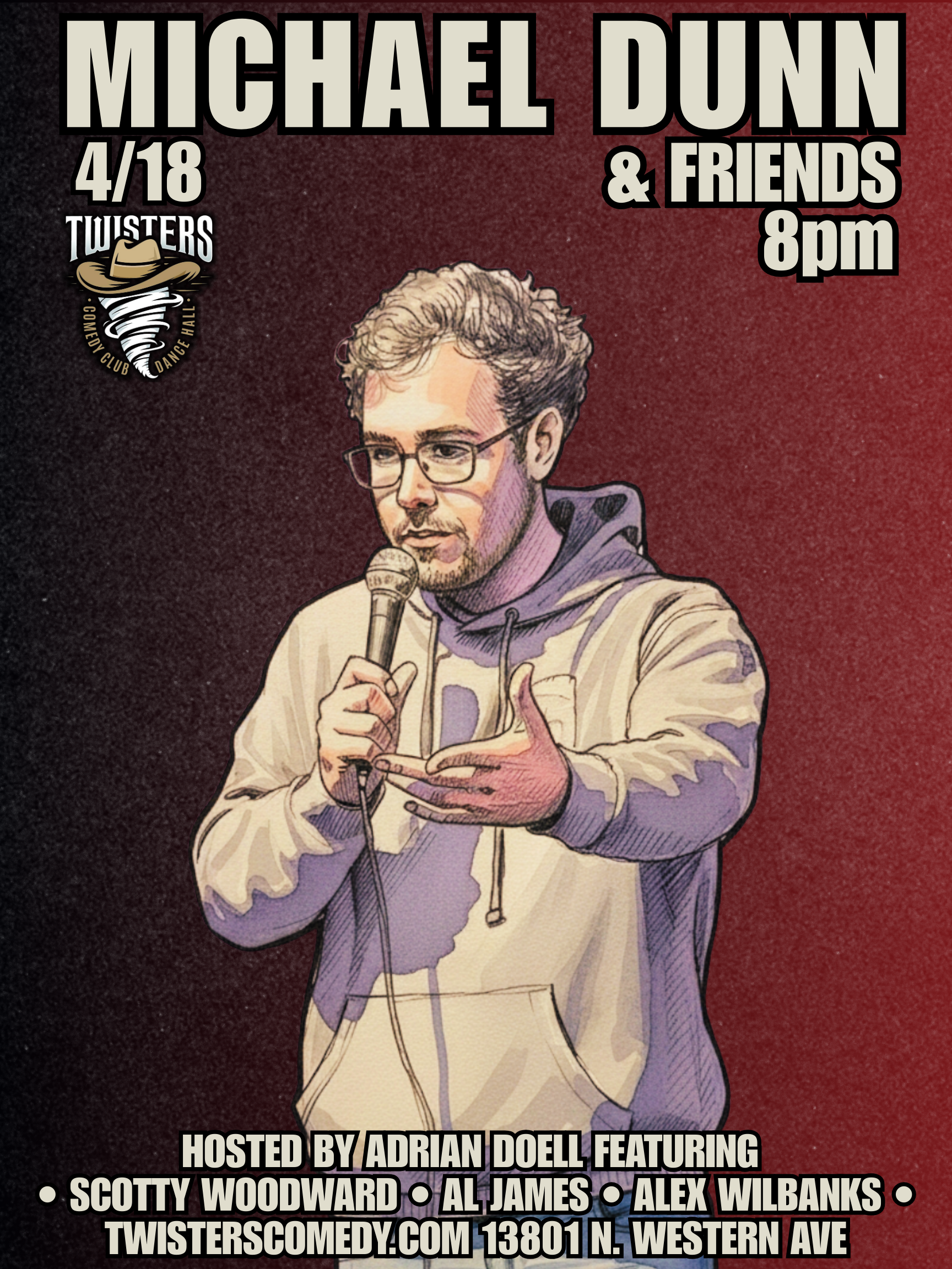 Michael Dunn, the wild man behind dual hosts at the JJs Alley mic is headlining his first showcase style show at Twisters Comedy Club!