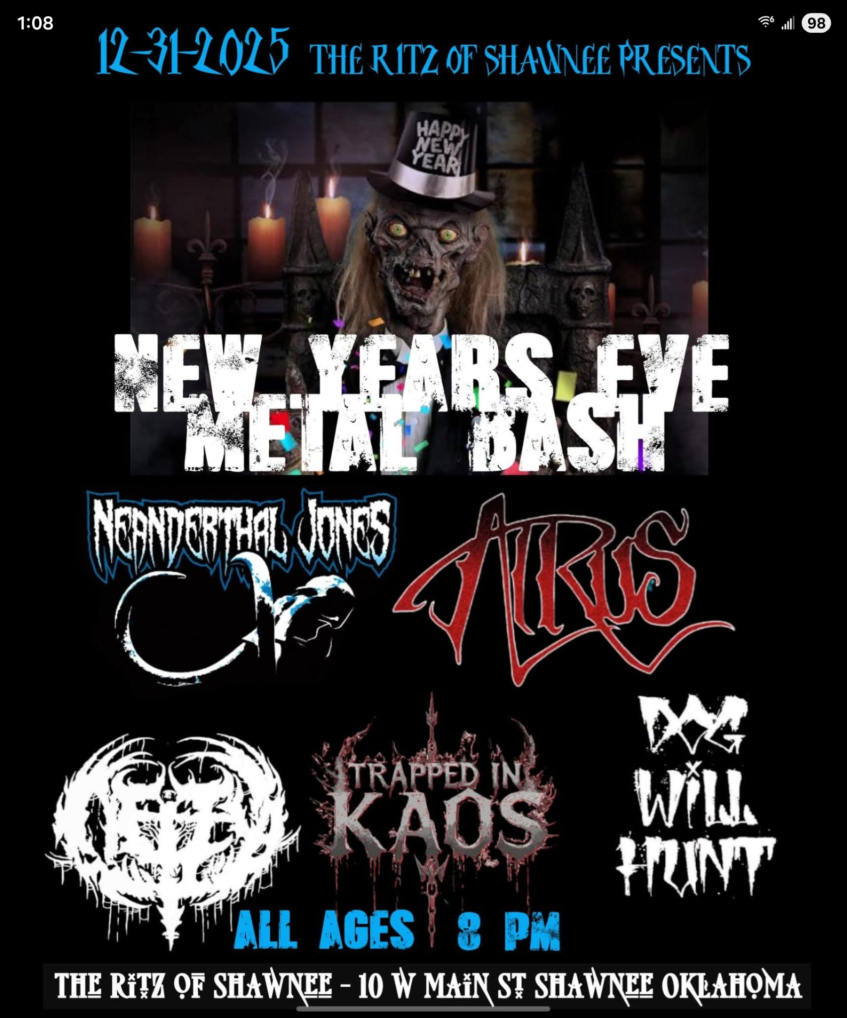 NEW YEARS EVE METAL BASH - Neanderthal Jones, Atrus, Diety,Trapped In Kaos, Dog Will Hunt