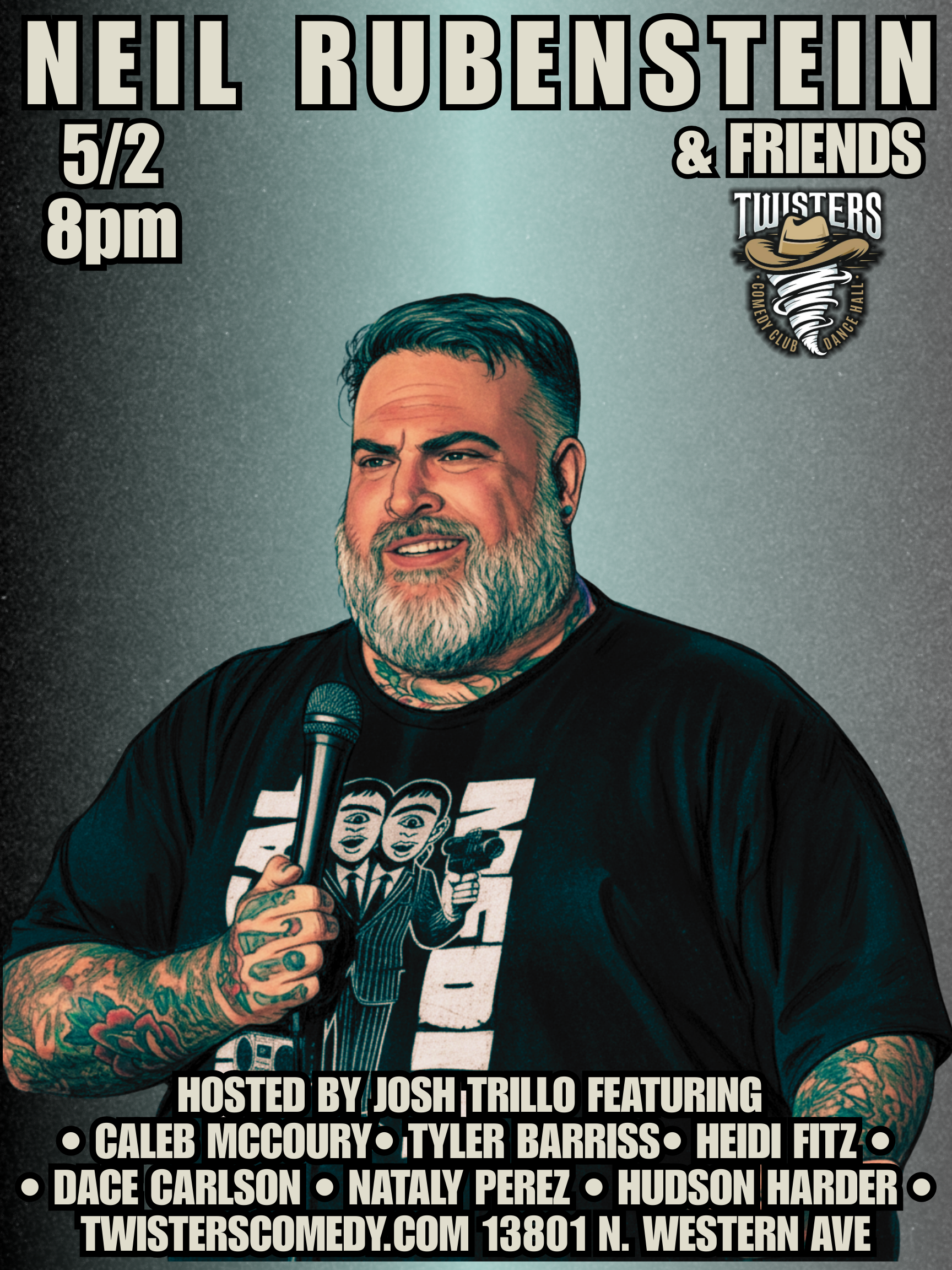 Comedian Neil Rubenstein is a burly, tattooed guy who plays against type; kind, cerebral, but still casually mentions past illegal activities (running a poker room, owning a brothel, etc.) the way one might reference a Renaissance Lit course you took in college.