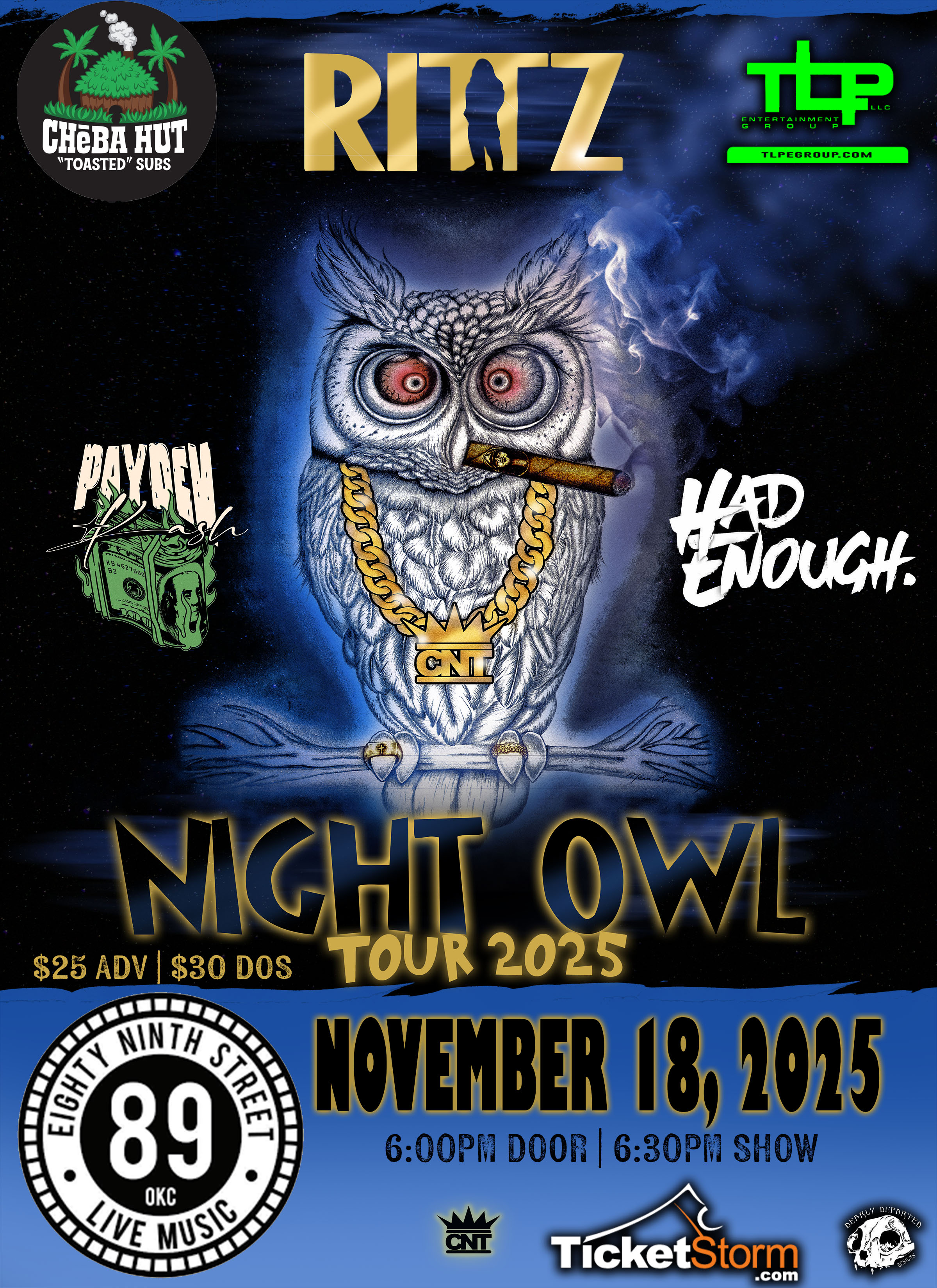 Rittz is living proof that Southern hip-hop is alive and well in the heart of Atlanta. Popularized by his early collaborations with friend and tourmate Yelawolf, the Gwinnett County emcee accentuates smooth, soul-dusted sound with rapid-fire flow and precise delivery. The perfect blend of finesse and fire, his albums (The Life and Times of Johnny Valiant, Next to Nothing, and Top Of The Line) have become Strange Music fan favorites. From humble beginnings to stages nationwide, Rittz brings an honest humor to his music that is both unprecedented and grounded in his roots. Unmistakable both sonically and visually, Rittz's swagger and lyricism are as iconic as his signature mane and ever-present bottle of Crown Royal.