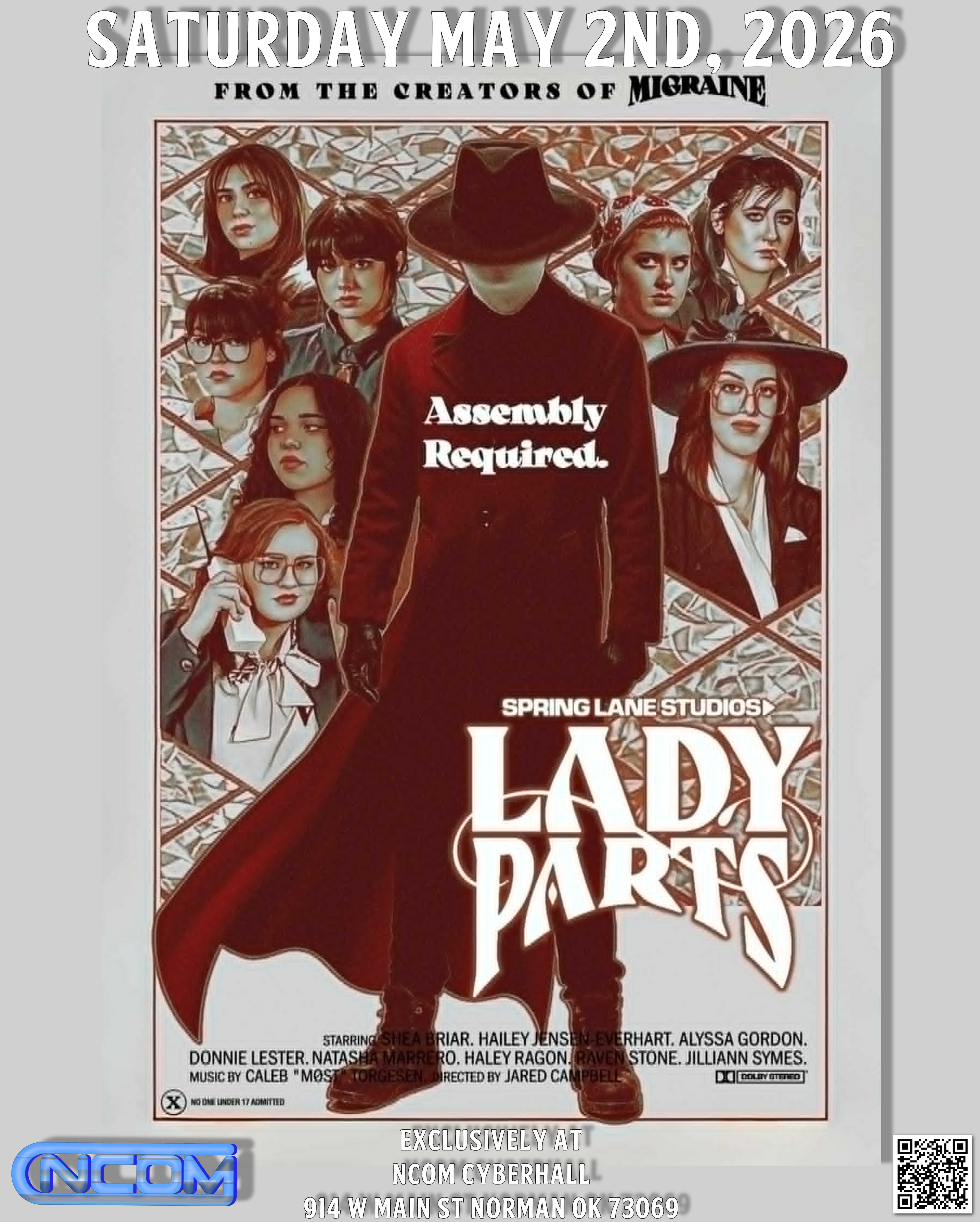 From the creators of Migraine and St. Patricks Day! Lady Parts Traci, a gallerist, is relentlessly pursued by a sadistic killer fixated on a painting that once graced her gallery's centerpiece. Following a home invasion, Traci's friends come to offer solace and protection. But as the bodies begin to pile up, Traci is thrust into a desperate search for the painting, knowing it’s the only chance to stop the killer’s relentless slaughter. This is the Exclusive Oklahoma Screening! Don't miss out! Film start at 7pm. Free Entry. Suggested 18+. We have a snack bar available. We have plenty of seating or feel free to bring your own.