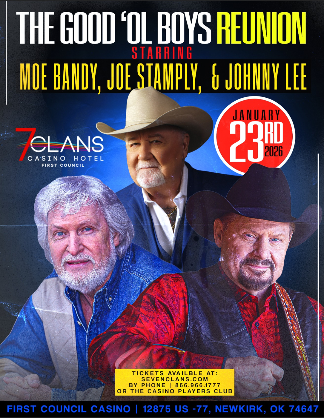 Moe Bandy, Joe Stampley and Johnny Lee are performing together in a show billed as the "Good Ol' Boys Reunion".