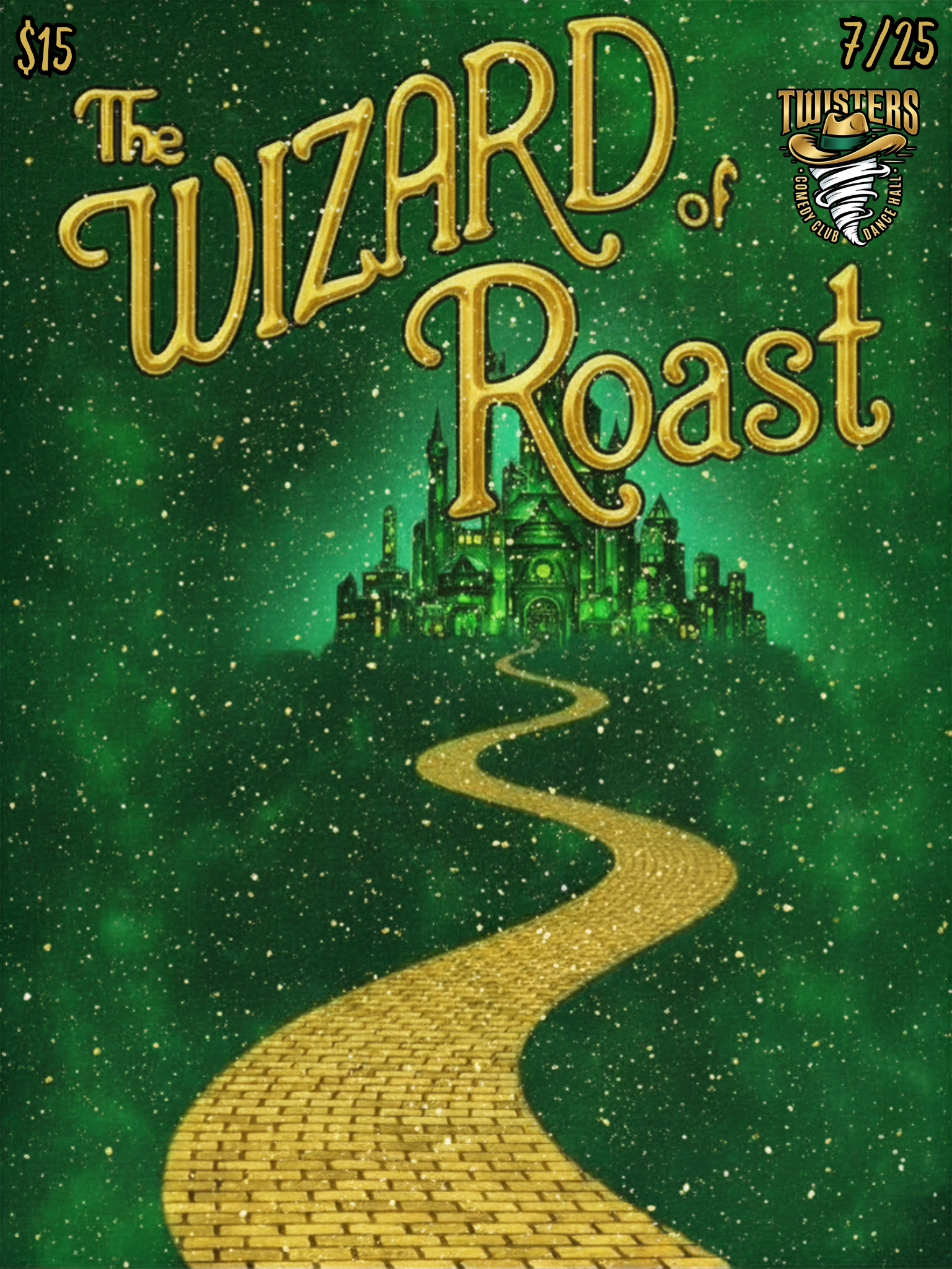 The Wizard of Roast. A Wizard of Oz themed comedy roast gameshow. Each participating comic will do a 10 minute set to introduce themselves to the crowd. The host (me) is the wizard 4 comics roast each other in single elimination rounds to see which comic gets to face off against the wizard in the final. If they win they get extra money. If they don't they get the same pay as the other contestants. They also get to ask for 3 things (like the characters in the story) heart, courage, and a brain. They can ask for all 3 but only one time for each. If they ask for heart their opponent loses a joke that round. If they ask for courage they get to tell an extra joke that round. If they ask for a brain they can get an extra roast against the opponent from the wizard or one of the other roasters!