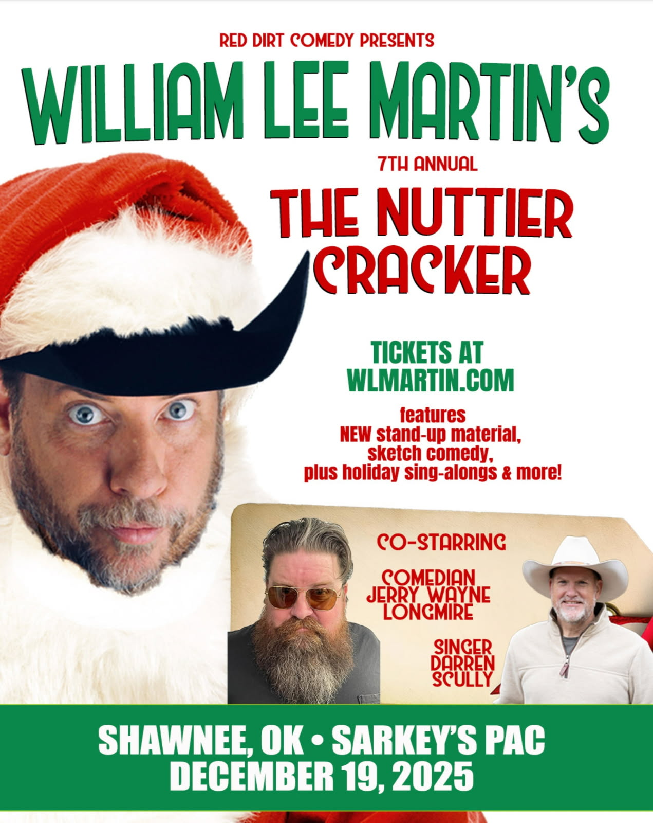 William Lee Martin is bringing his side-splitting holiday tradition "The Nuttier Cracker" - A Christmas Comedy Show to Sarkey's Performing Arts Center in Shawnee, OK on December 19, 2025.